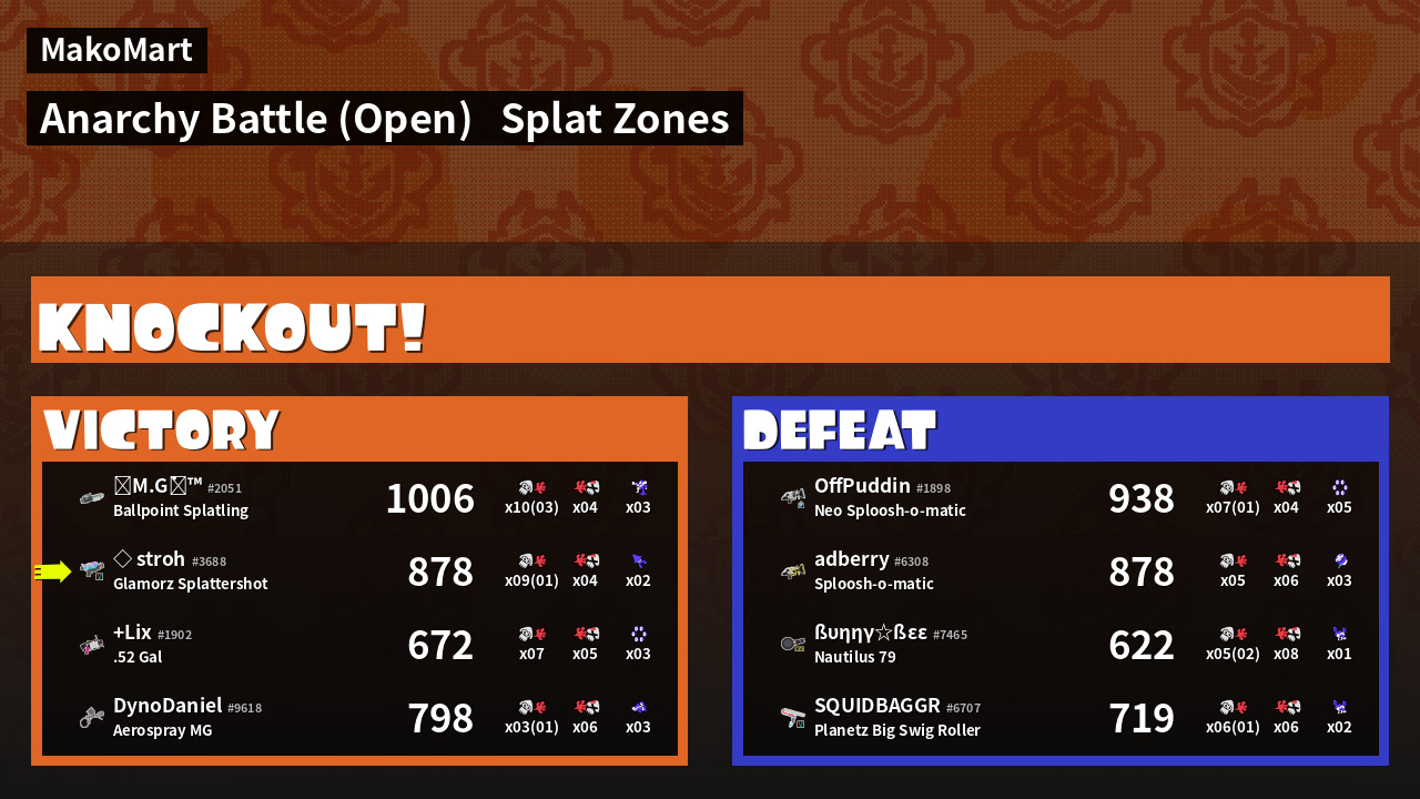 | Mode | Splat Zones - Anarchy Battle (Open) | ||