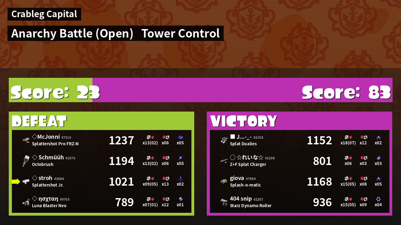 | Mode | Tower Control - Anarchy Battle (Open) | ||
