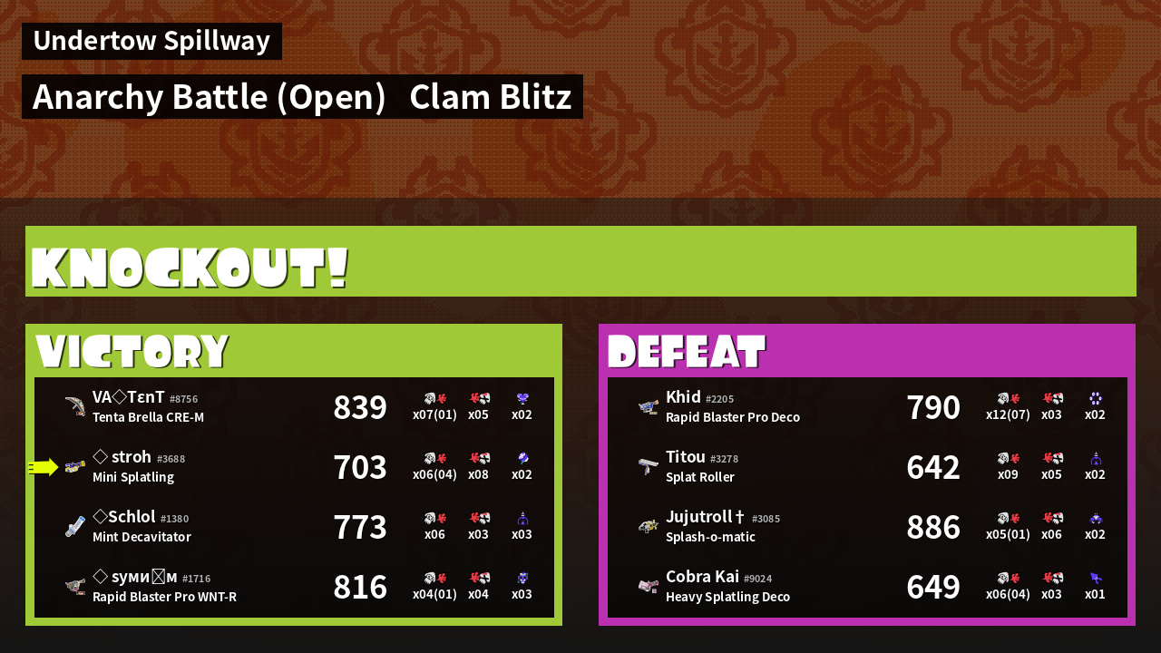 | Mode | Clam Blitz - Anarchy Battle (Open) | ||