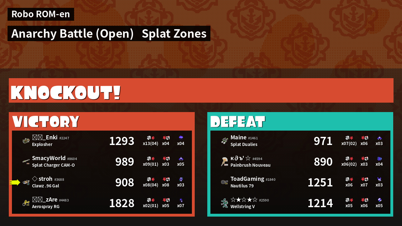 | Mode | Splat Zones - Anarchy Battle (Open) | ||