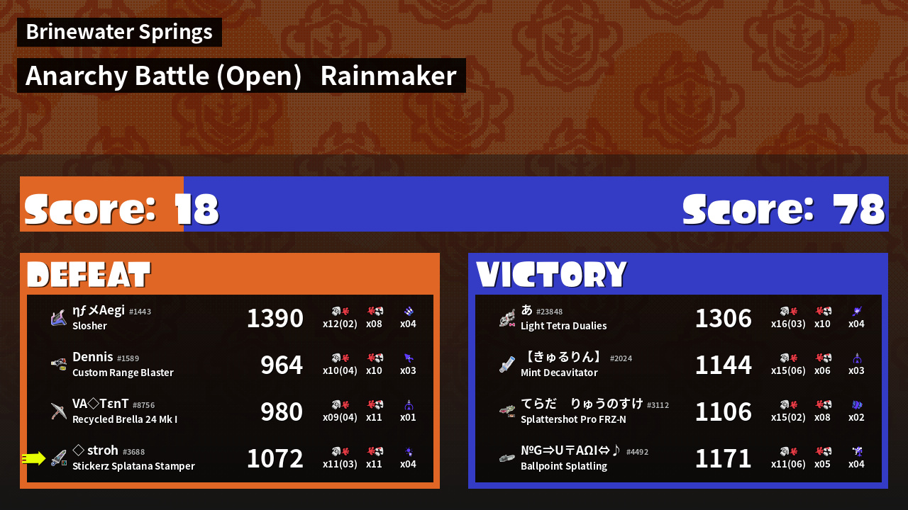 | Mode | Rainmaker - Anarchy Battle (Open) | ||