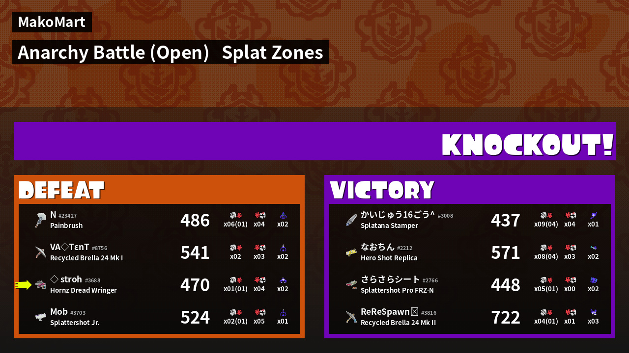 | Mode | Splat Zones - Anarchy Battle (Open) | ||