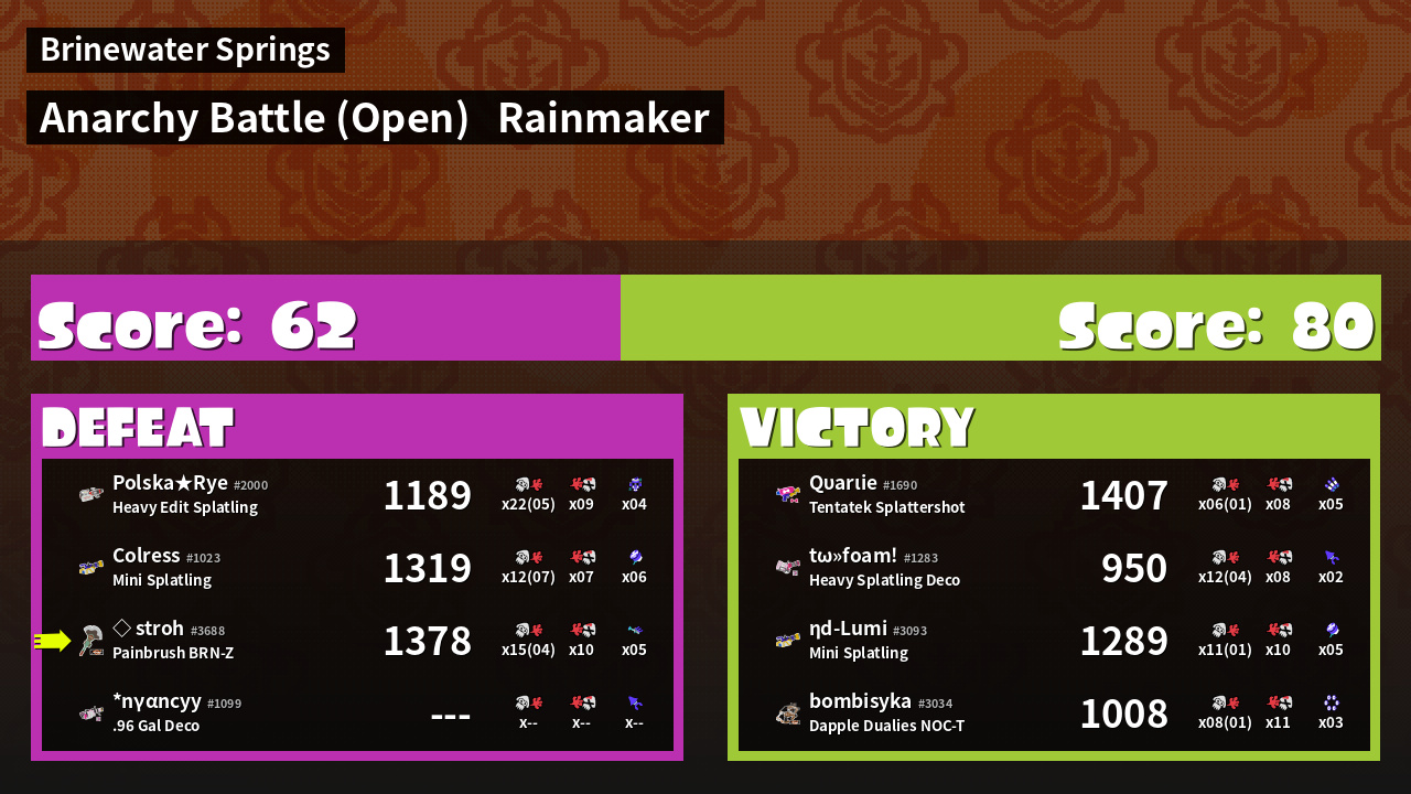 | Mode | Rainmaker - Anarchy Battle (Open) | ||