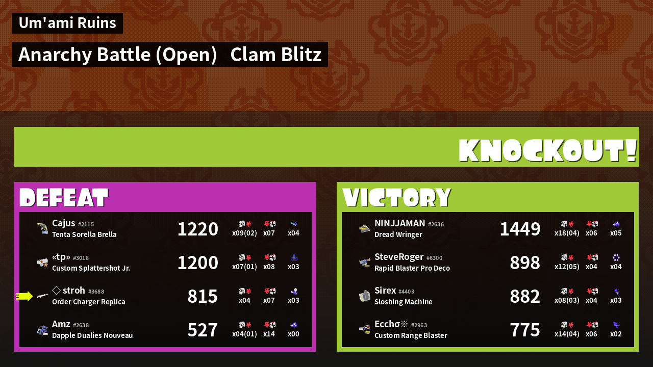 | Mode | Clam Blitz - Anarchy Battle (Open) | ||