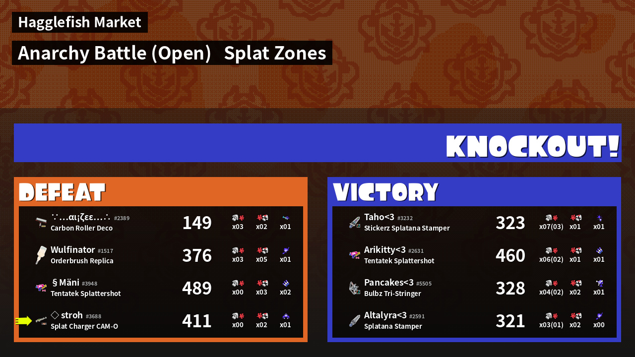 | Mode |  Splat Zones -  Anarchy Battle (Open) | ||