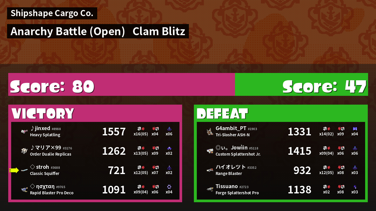 | Mode | Clam Blitz - Anarchy Battle (Open) | ||