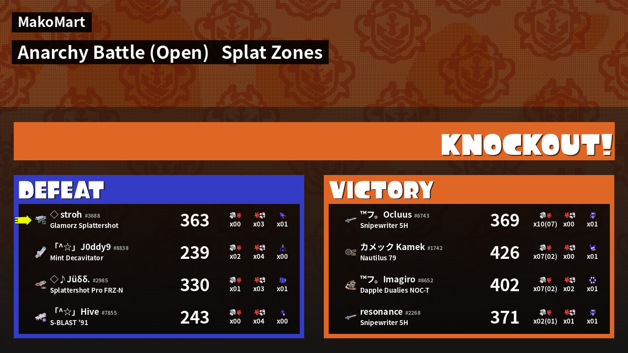 | Mode | Splat Zones - Anarchy Battle (Open) | ||