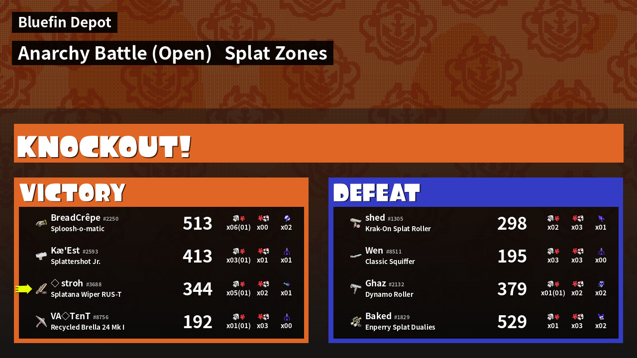 | Mode | Splat Zones - Anarchy Battle (Open) | ||