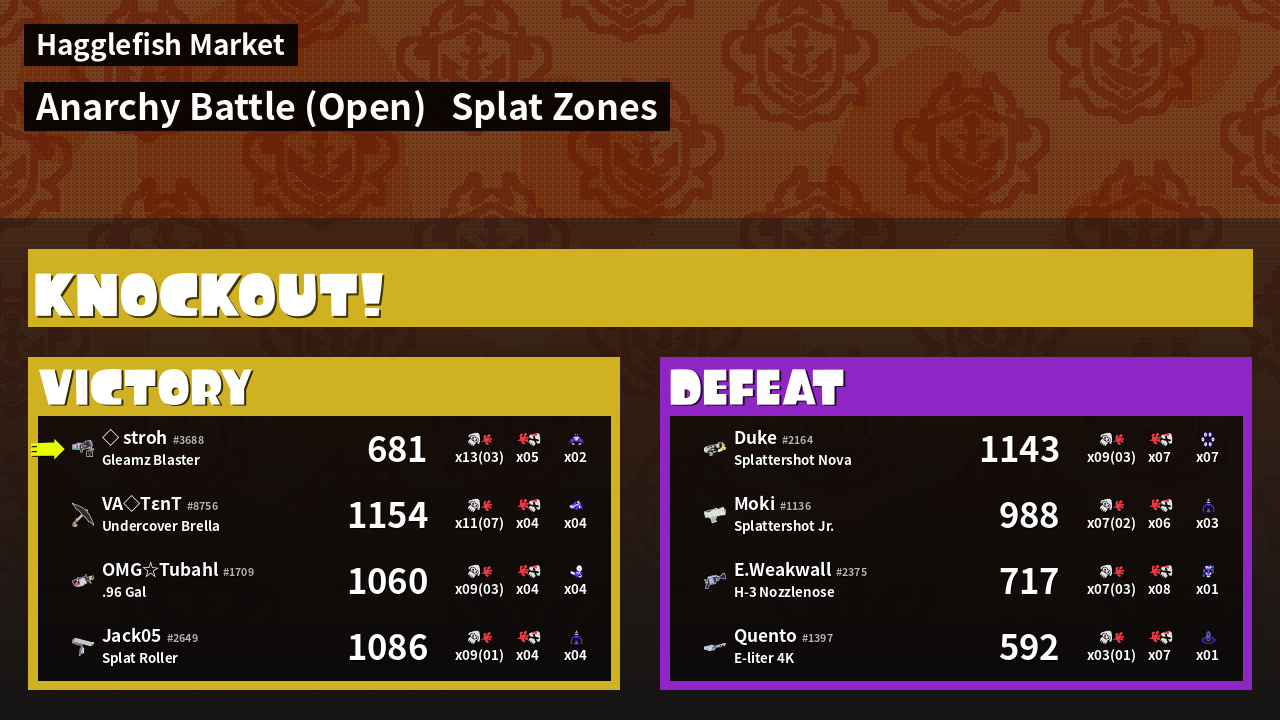 | Mode | Splat Zones - Anarchy Battle (Open) | ||