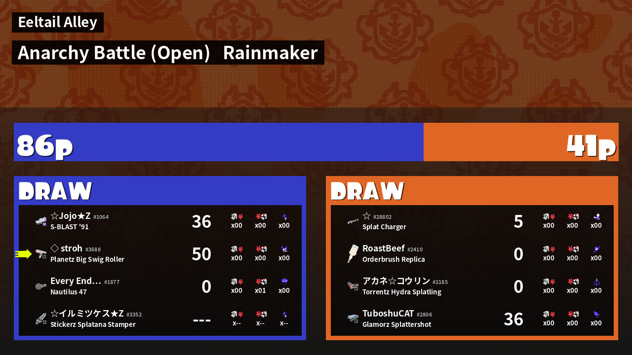 | Mode | Rainmaker - Anarchy Battle (Open) | ||