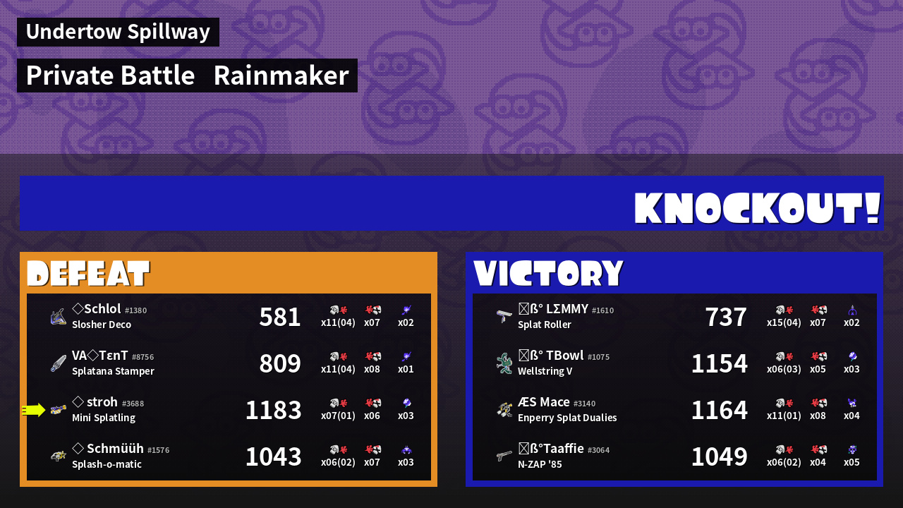 | Weapon | Mini Splatling ( Burst Bomb / Ultra Stamp) | ||