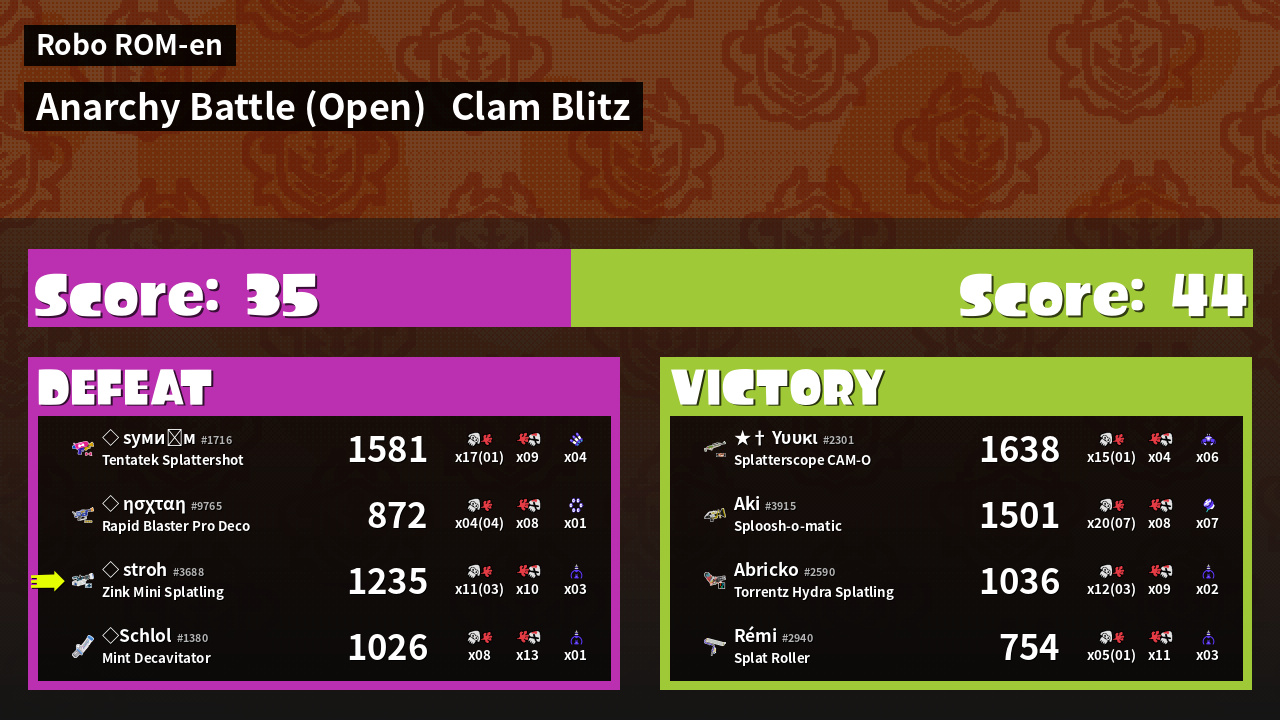 | Mode | Clam Blitz - Anarchy Battle (Open) | ||