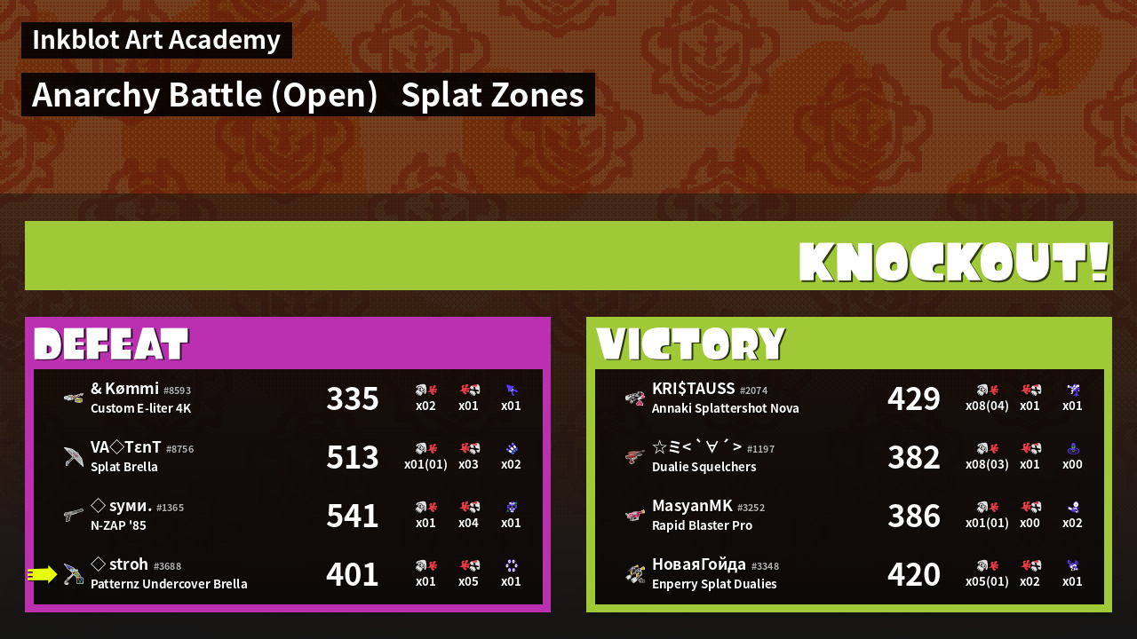 | Mode | Splat Zones - Anarchy Battle (Open) | ||