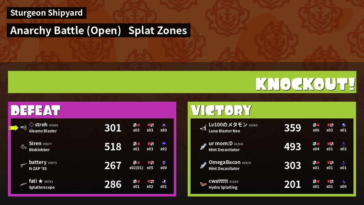 | Mode | Splat Zones - Anarchy Battle (Open) | ||