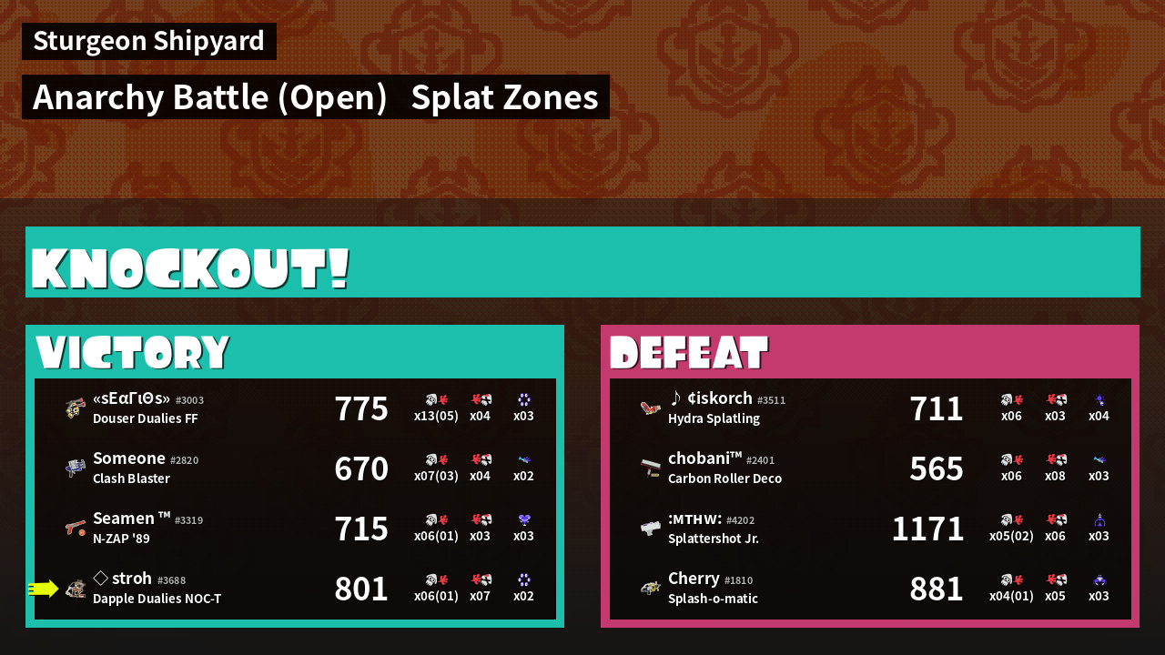 | Mode | Splat Zones - Anarchy Battle (Open) | ||