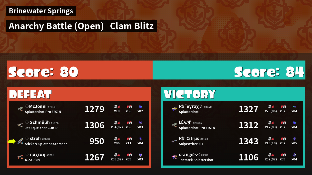 | Mode | Clam Blitz - Anarchy Battle (Open) | ||