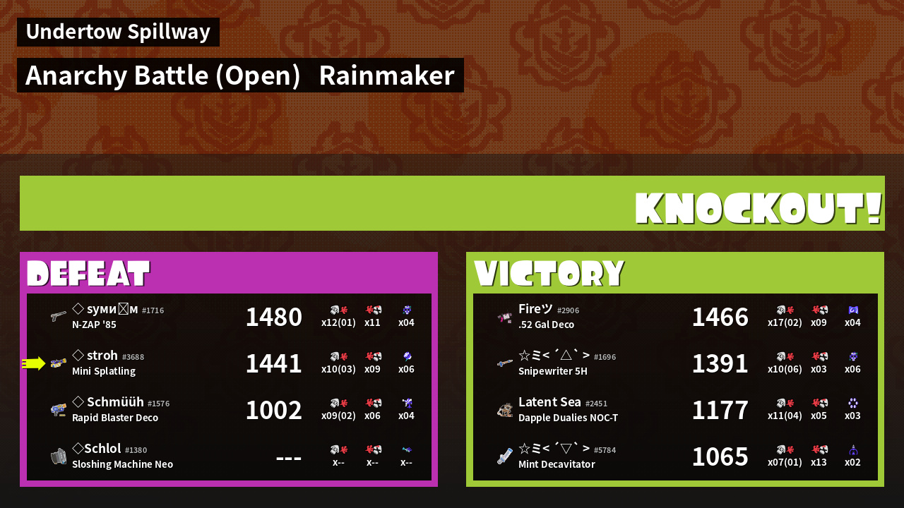 | Mode | Rainmaker - Anarchy Battle (Open) | ||