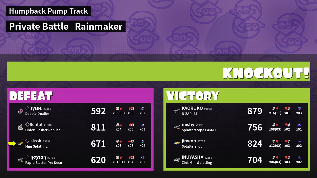 | Medals | #1 Rainmaker Stopper #1 Ultra Stamp User #2 Turf Inker | ||