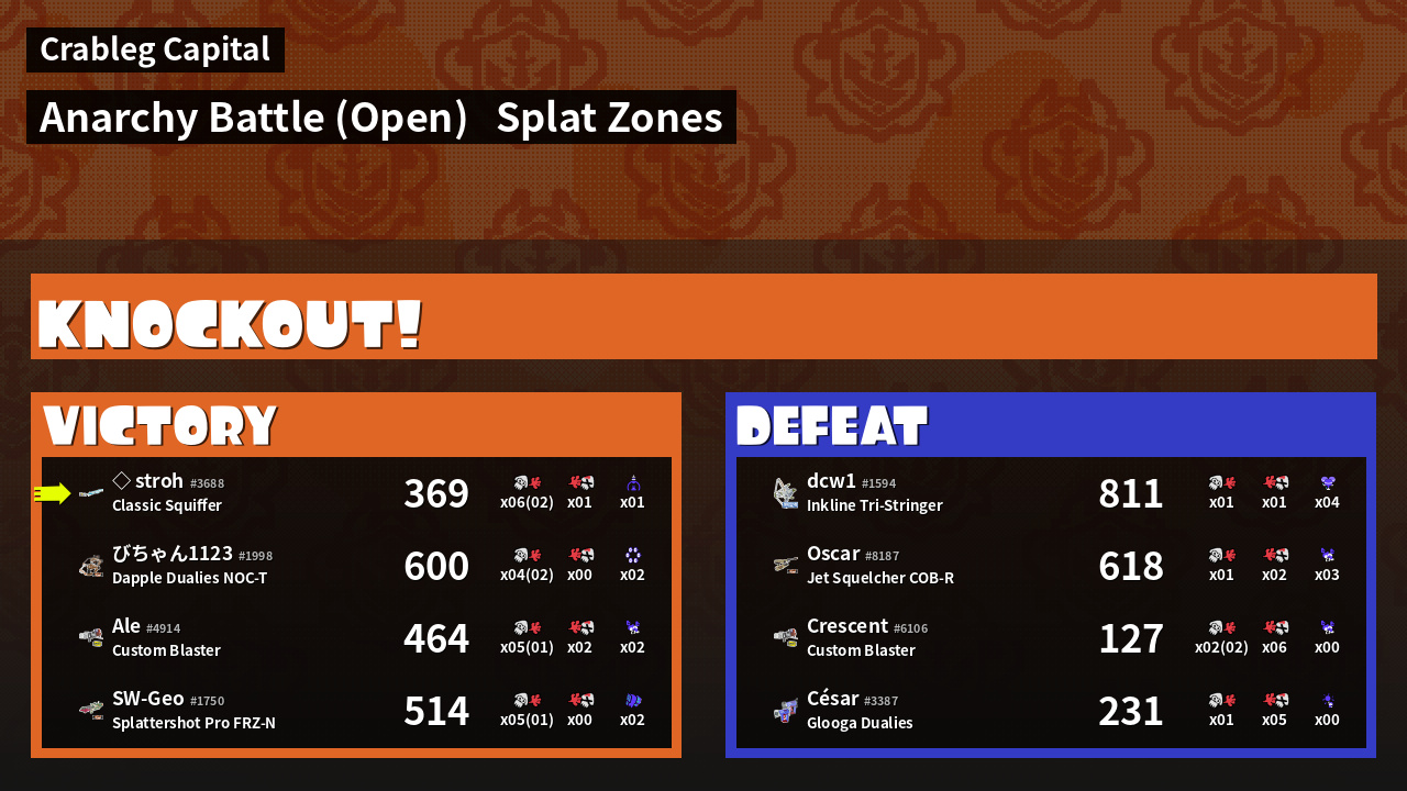 | Mode | Splat Zones - Anarchy Battle (Open) | ||