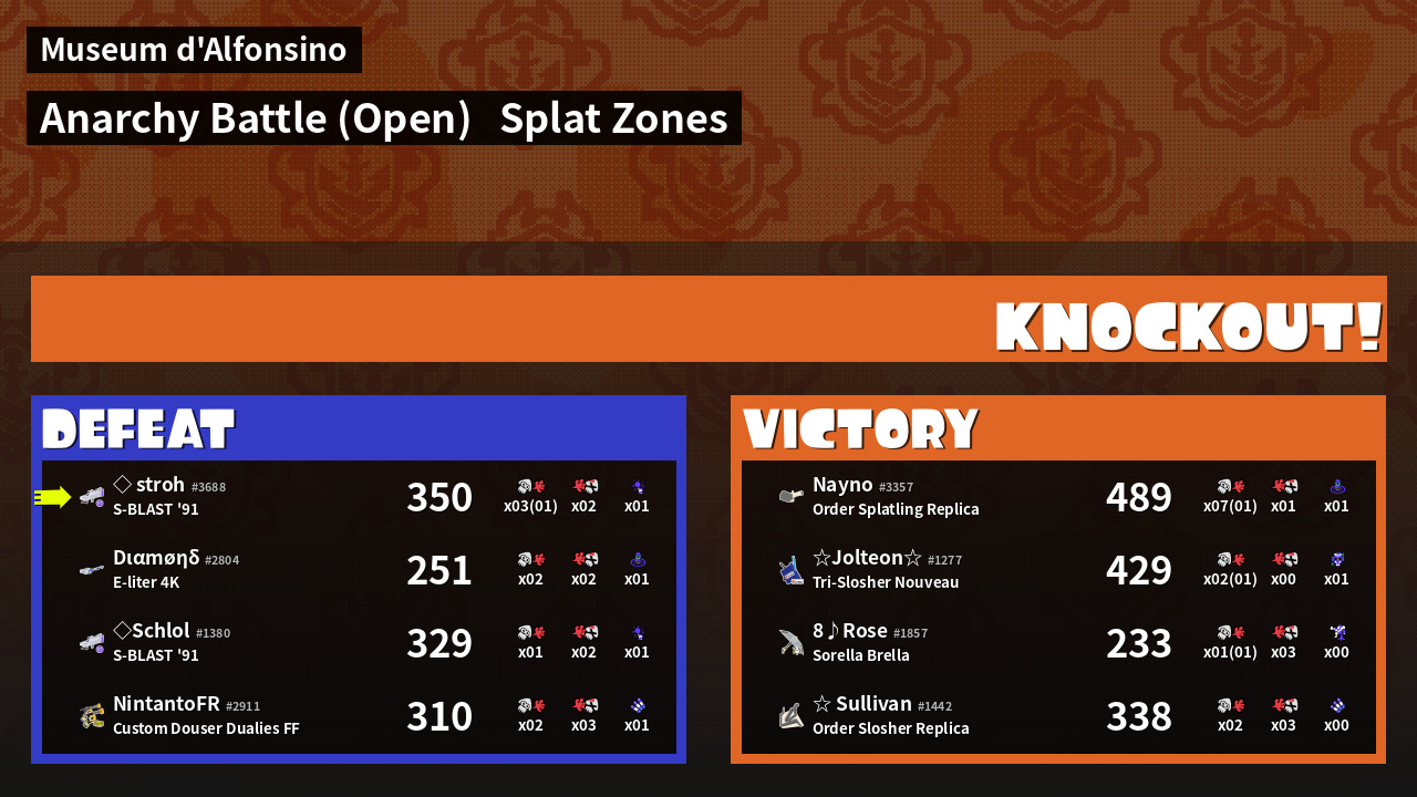 | Mode | Splat Zones - Anarchy Battle (Open) | ||