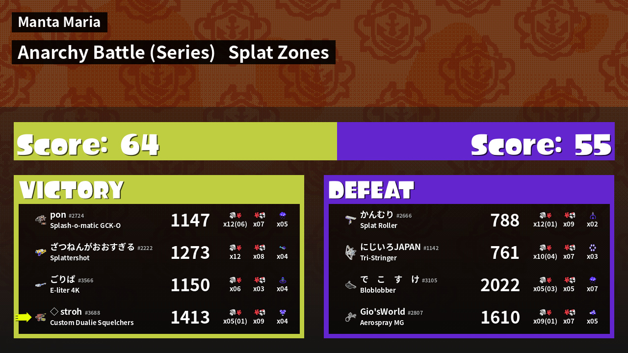 | Mode | Splat Zones - Anarchy Battle (Series) | ||