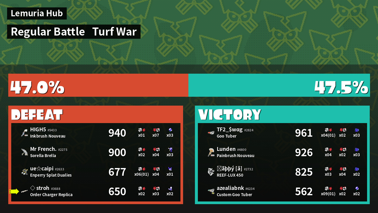 | Medals | #1 Enemy-Base Inker #1 Ink Consumer #1 Ink Vac User | ||