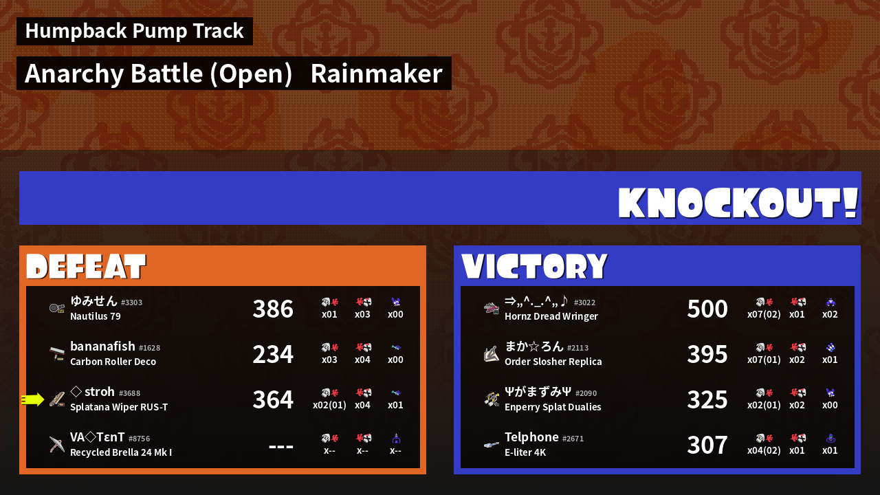 | Mode | Rainmaker - Anarchy Battle (Open) | ||