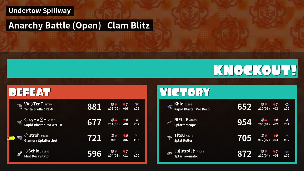| Mode | Clam Blitz - Anarchy Battle (Open) | ||