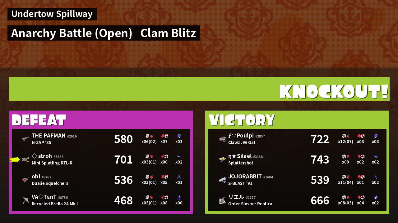 | Mode | Clam Blitz - Anarchy Battle (Open) | ||