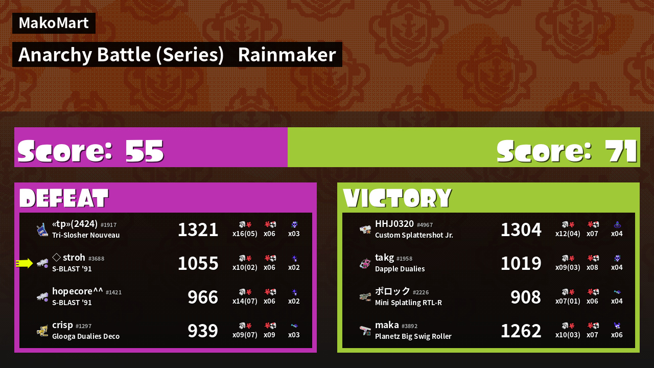 | Mode | Rainmaker - Anarchy Battle (Series) | ||