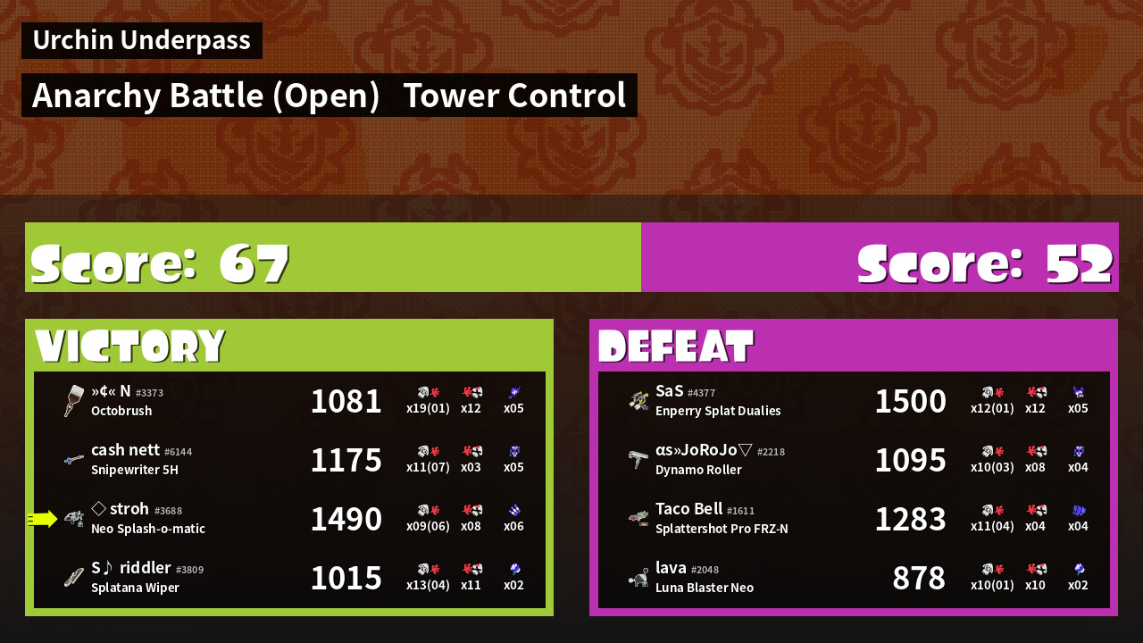 | Mode | Tower Control - Anarchy Battle (Open) | ||