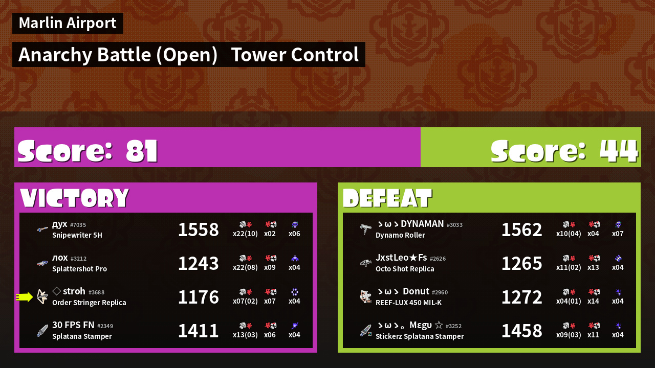 | Mode | Tower Control - Anarchy Battle (Open) | ||
