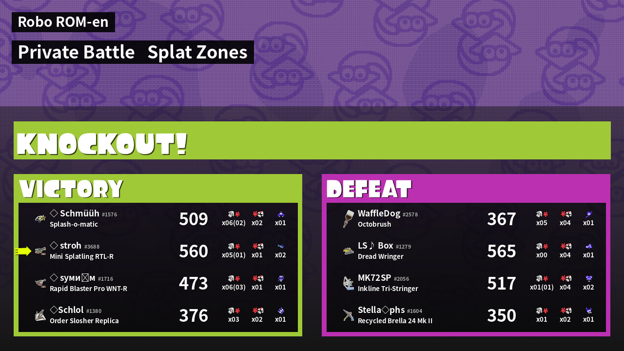 | Mode | Splat Zones - Private Battle | ||