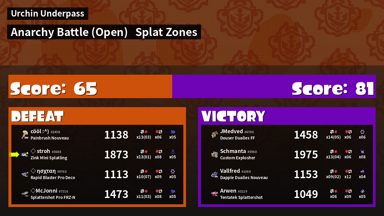 | Mode | Splat Zones - Anarchy Battle (Open) | ||