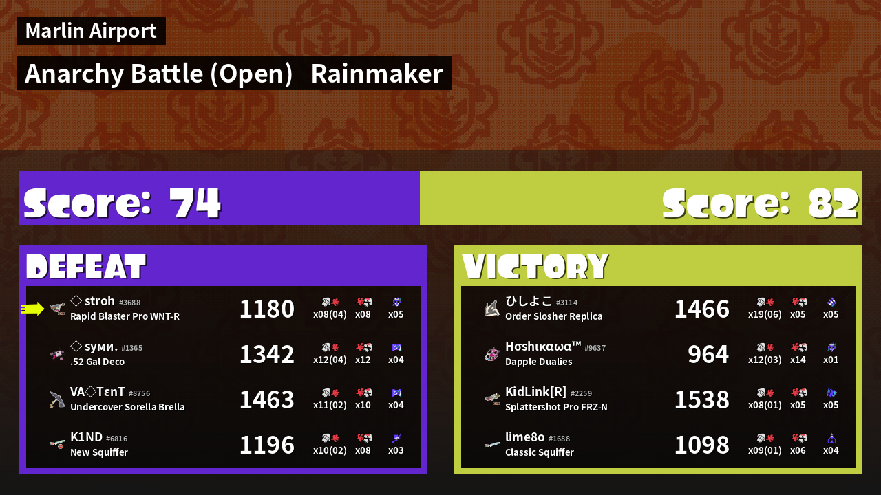 | Mode | Rainmaker - Anarchy Battle (Open) | ||