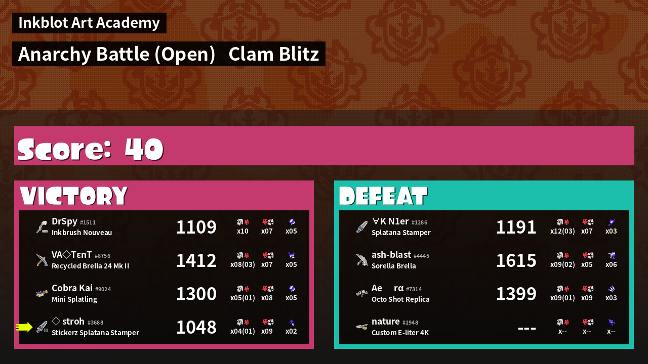 | Mode | Clam Blitz - Anarchy Battle (Open) | ||