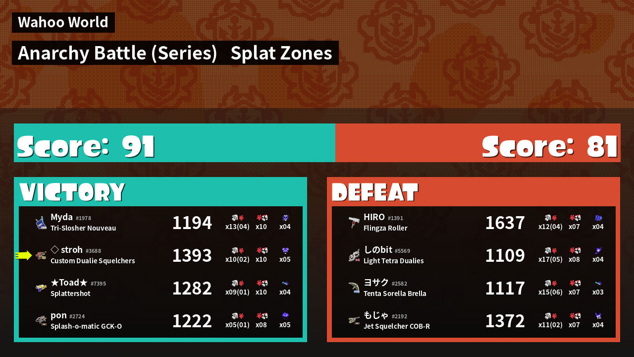| Mode | Splat Zones - Anarchy Battle (Series) | ||