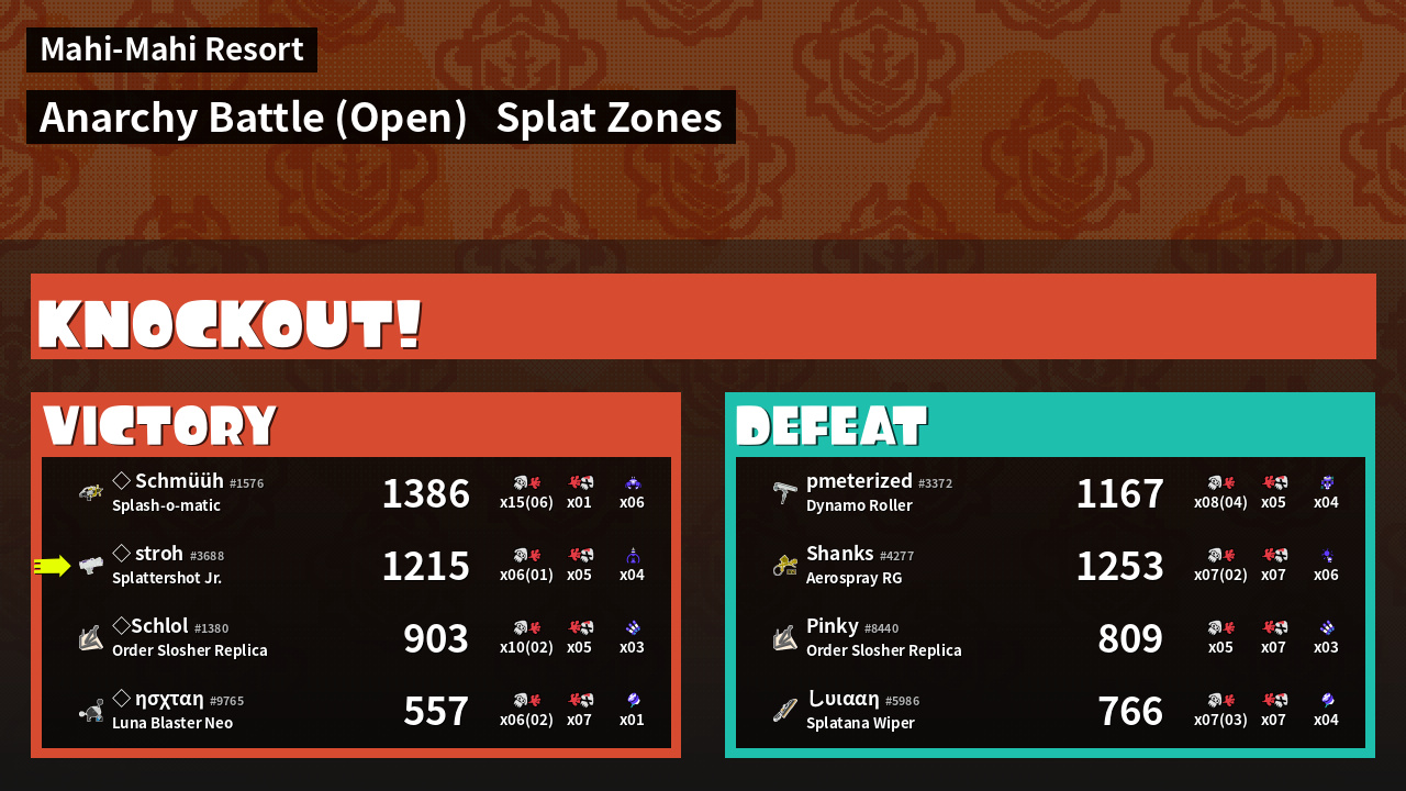 | Mode | Splat Zones - Anarchy Battle (Open) | ||