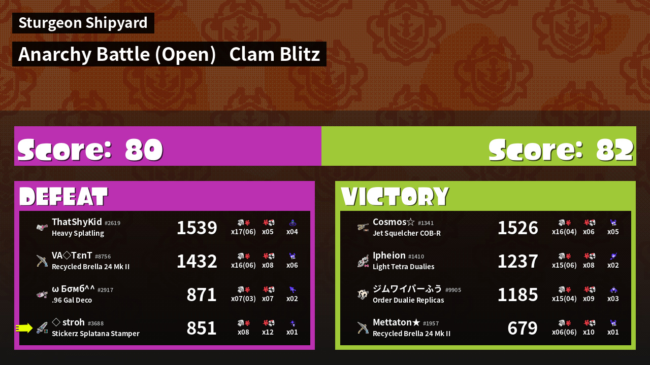 | Mode | Clam Blitz - Anarchy Battle (Open) | ||