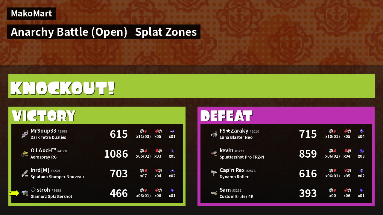 | Mode | Splat Zones - Anarchy Battle (Open) | ||