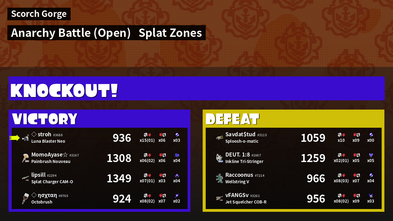 | Mode | Splat Zones - Anarchy Battle (Open) | ||