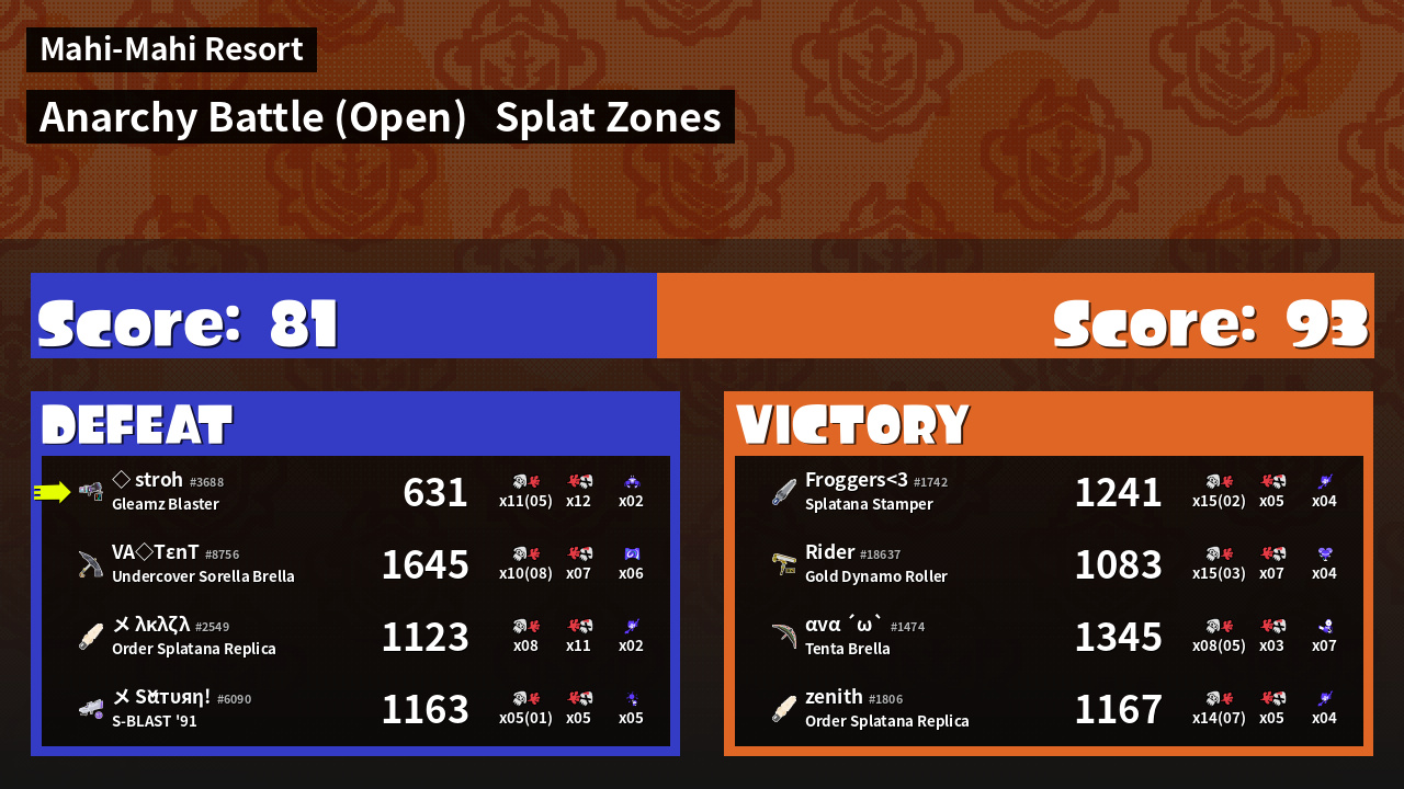 | Mode | Splat Zones - Anarchy Battle (Open) | ||