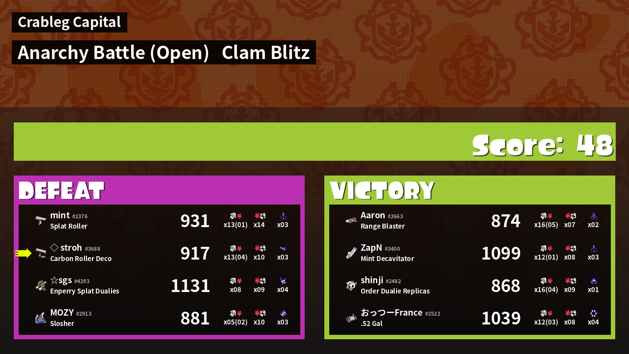 | Mode | Clam Blitz - Anarchy Battle (Open) | ||