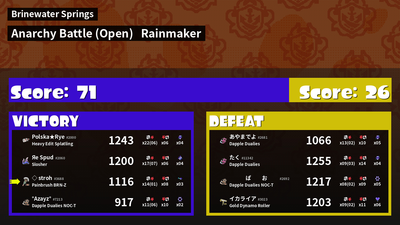 | Mode | Rainmaker - Anarchy Battle (Open) | ||