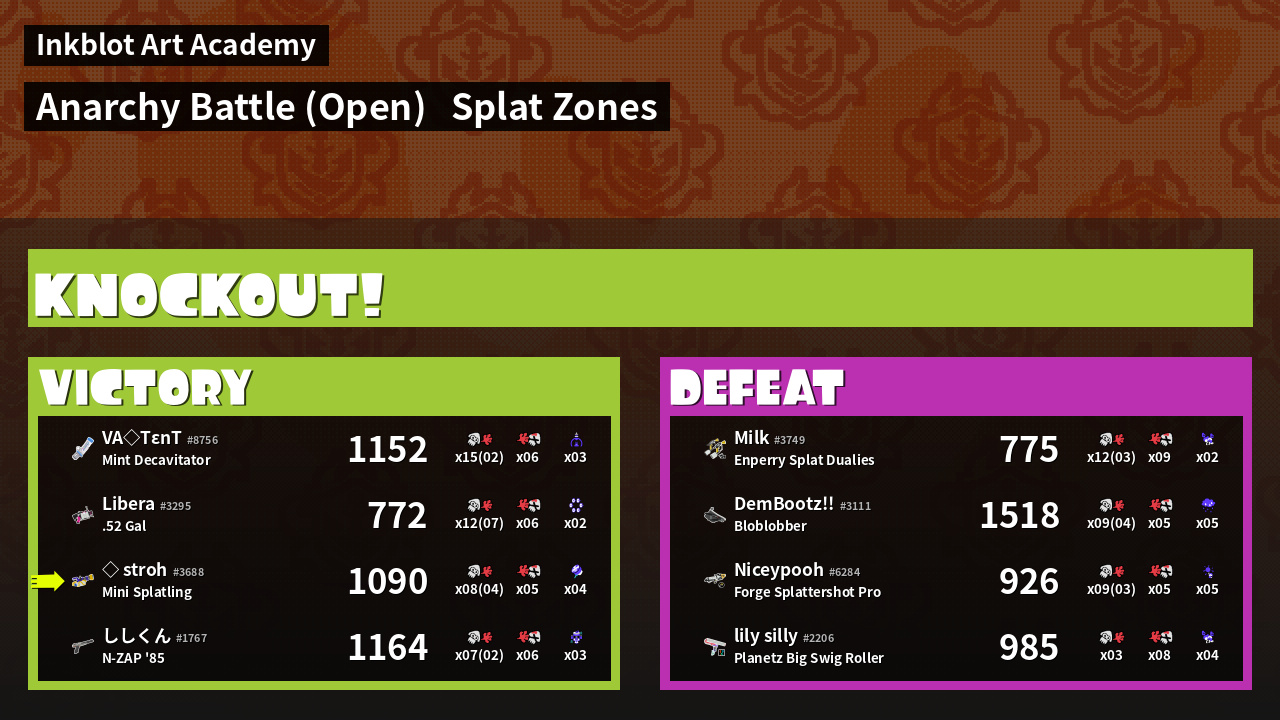 | Mode | Splat Zones - Anarchy Battle (Open) | ||