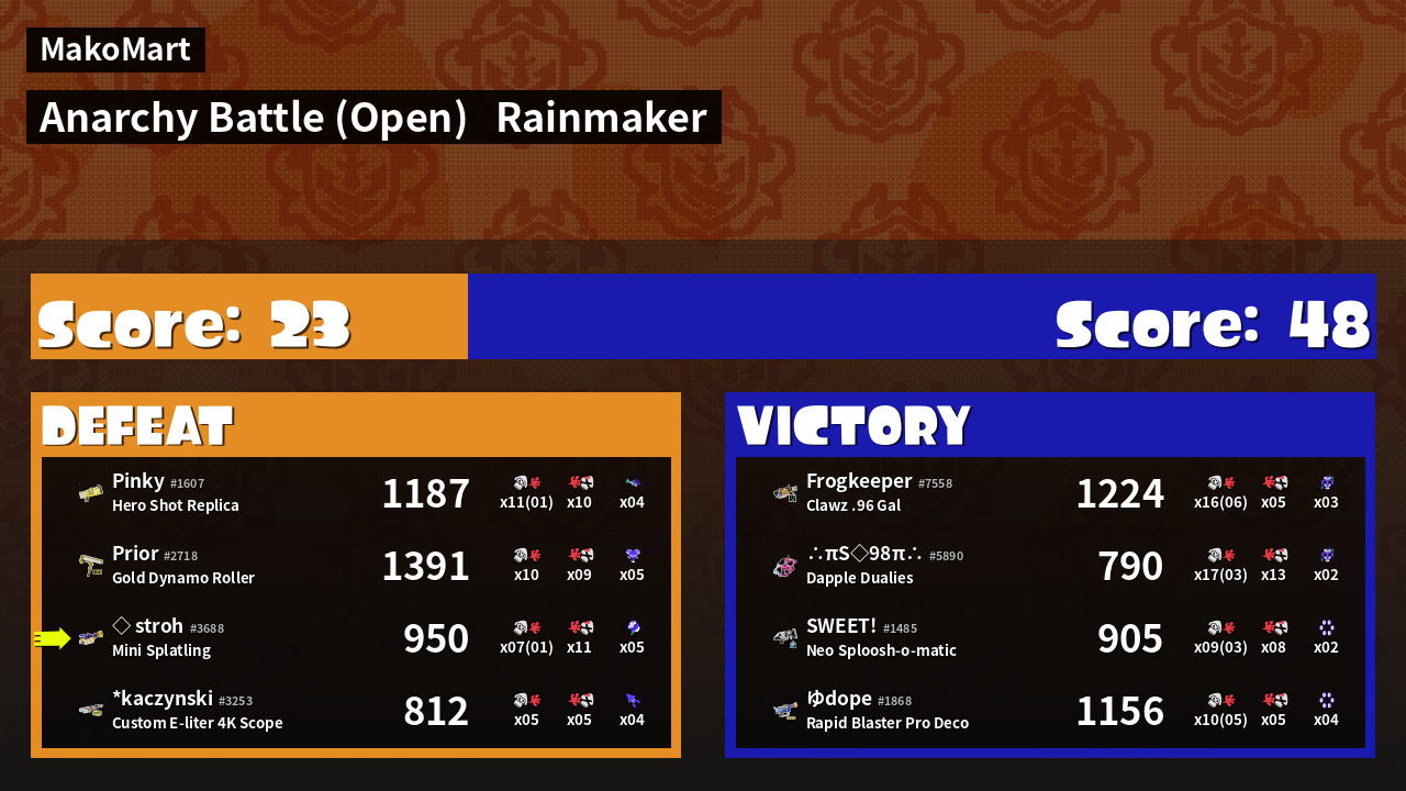 | Mode | Rainmaker - Anarchy Battle (Open) | ||