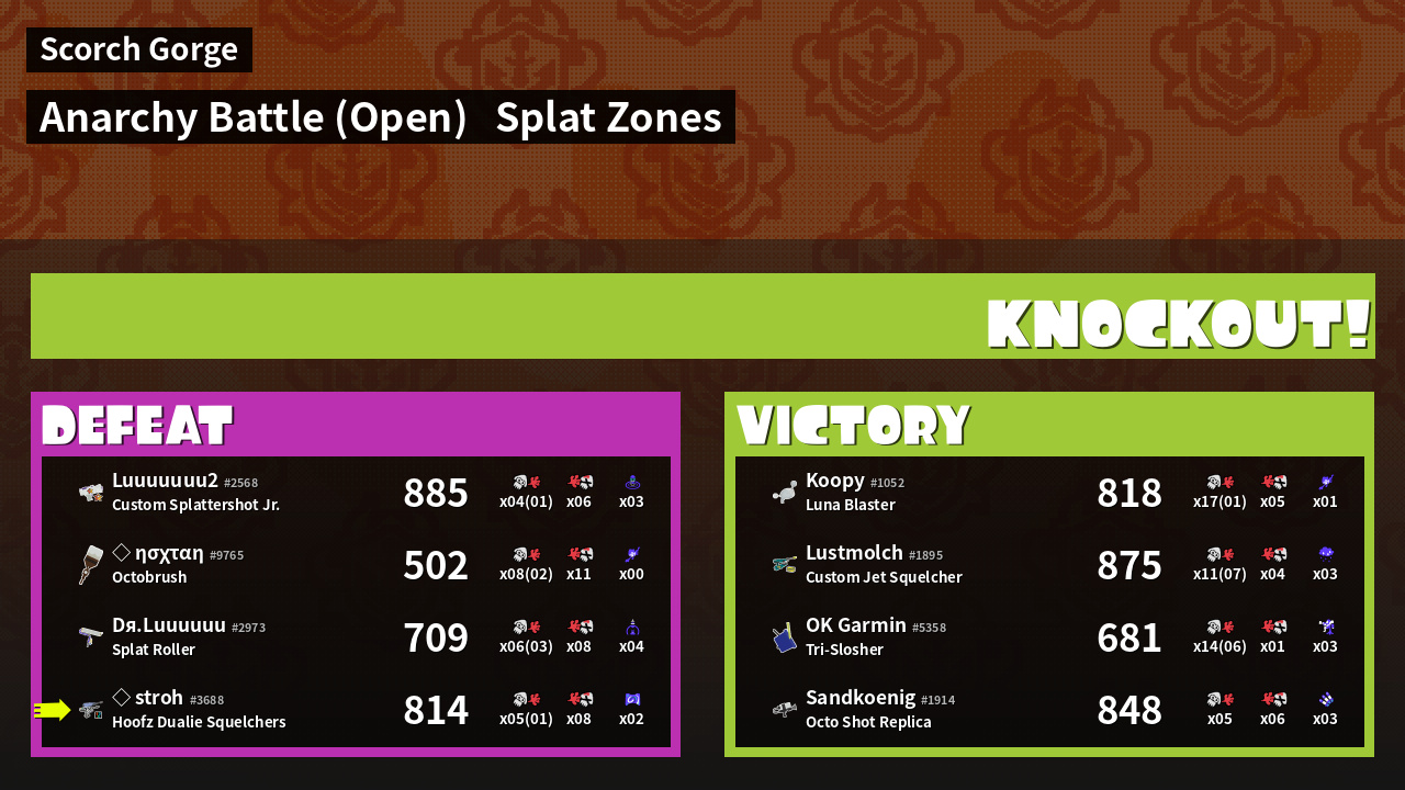| Mode | Splat Zones - Anarchy Battle (Open) | ||