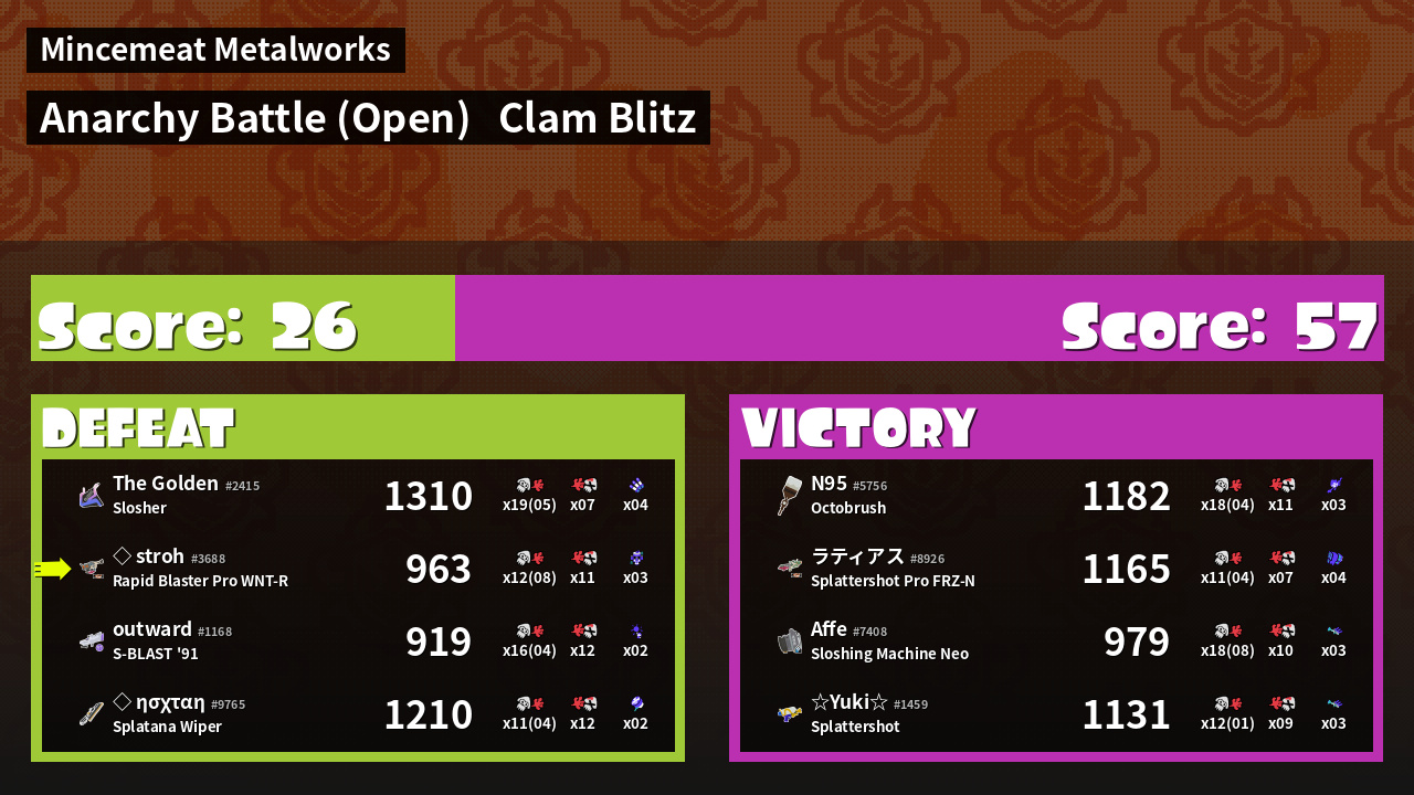 | Mode | Clam Blitz - Anarchy Battle (Open) | ||