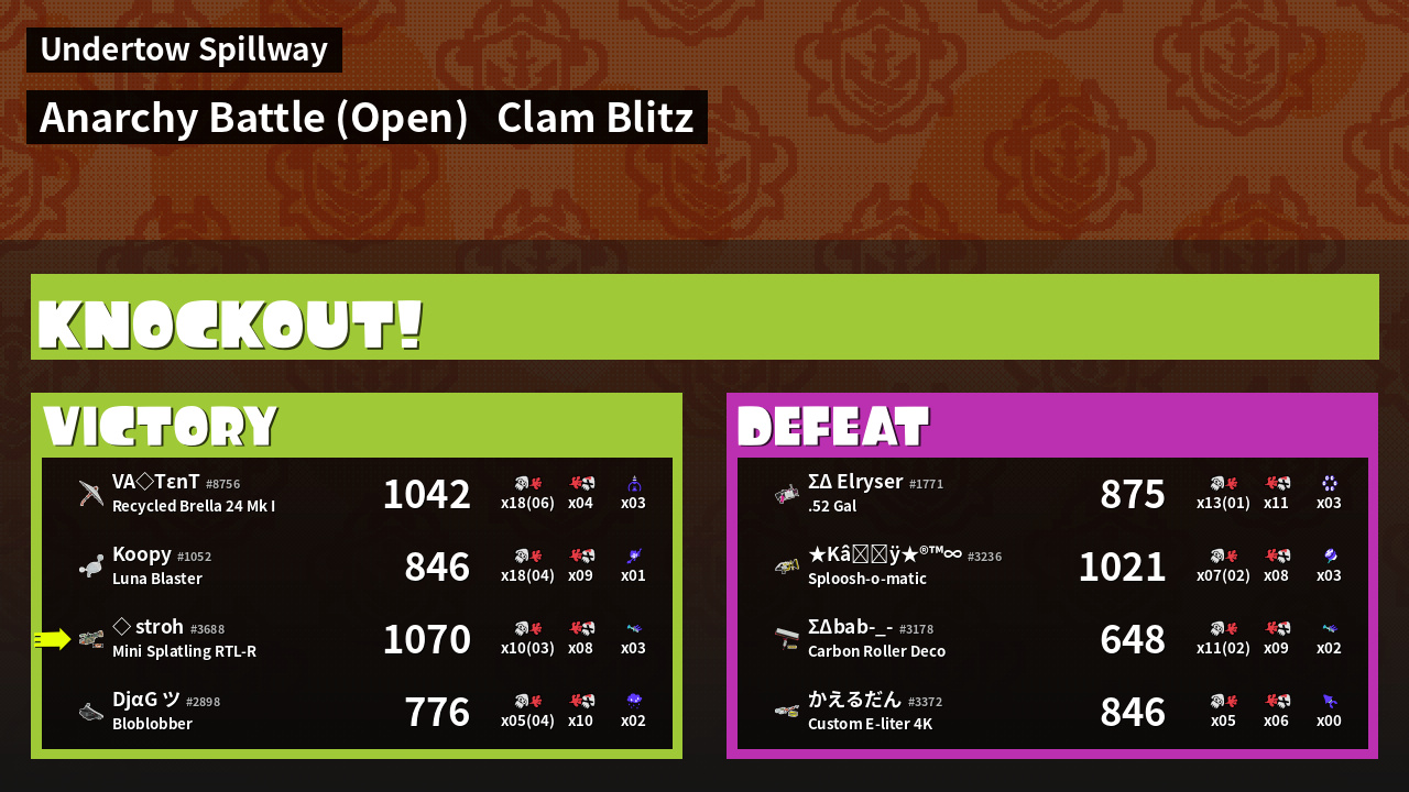 | Mode | Clam Blitz - Anarchy Battle (Open) | ||