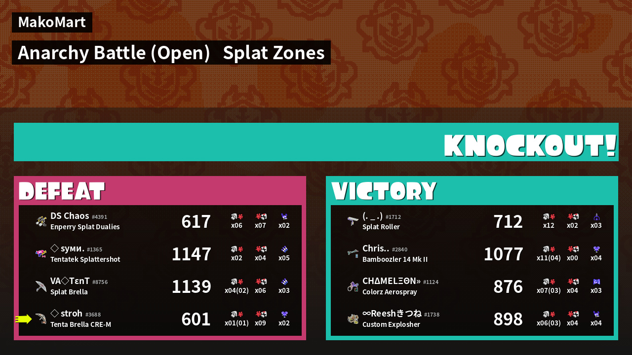 | Mode | Splat Zones - Anarchy Battle (Open) | ||
